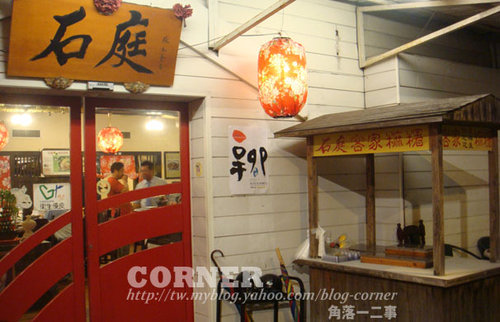 在門旁有一個客家麻糬的小亭。