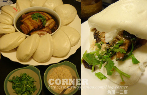 蒸的熱熱的刈包,搭配上肥茲茲的五花肉及解膩的福菜,再灑上些花生粉,再加上些香菜,真的好吃哇(ˉ『ˉ)