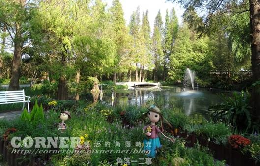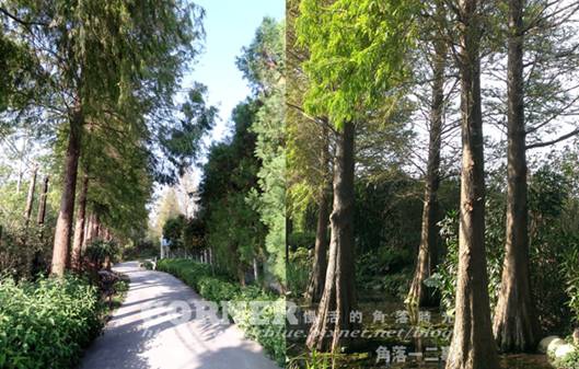 入口小溪中種著落羽松,想必在秋天時松紅落葉應該很美。