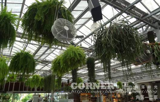 進到裏面,上方有著吊掛植物。
