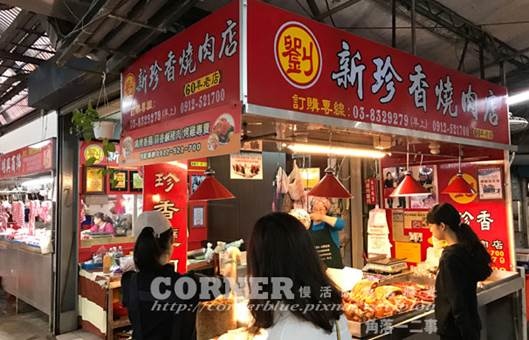 從中華路入口進去,經過一整排豬肉攤,在左側排最後一攤就是新珍香燒肉店了。